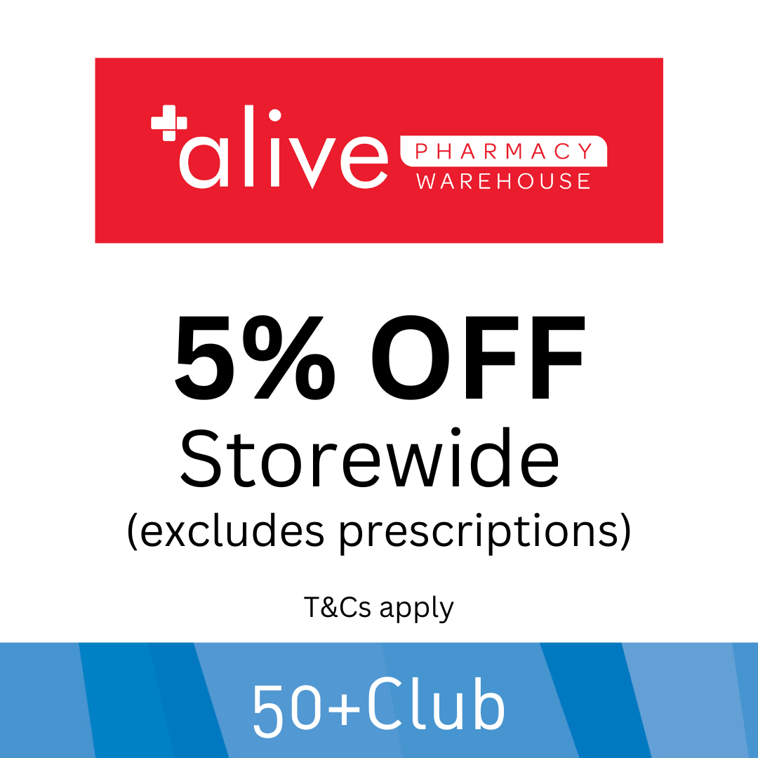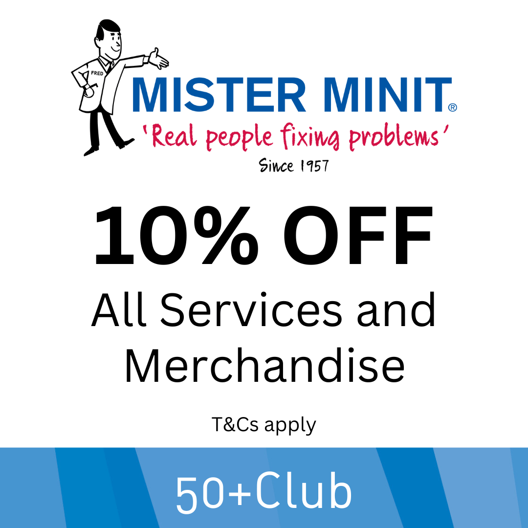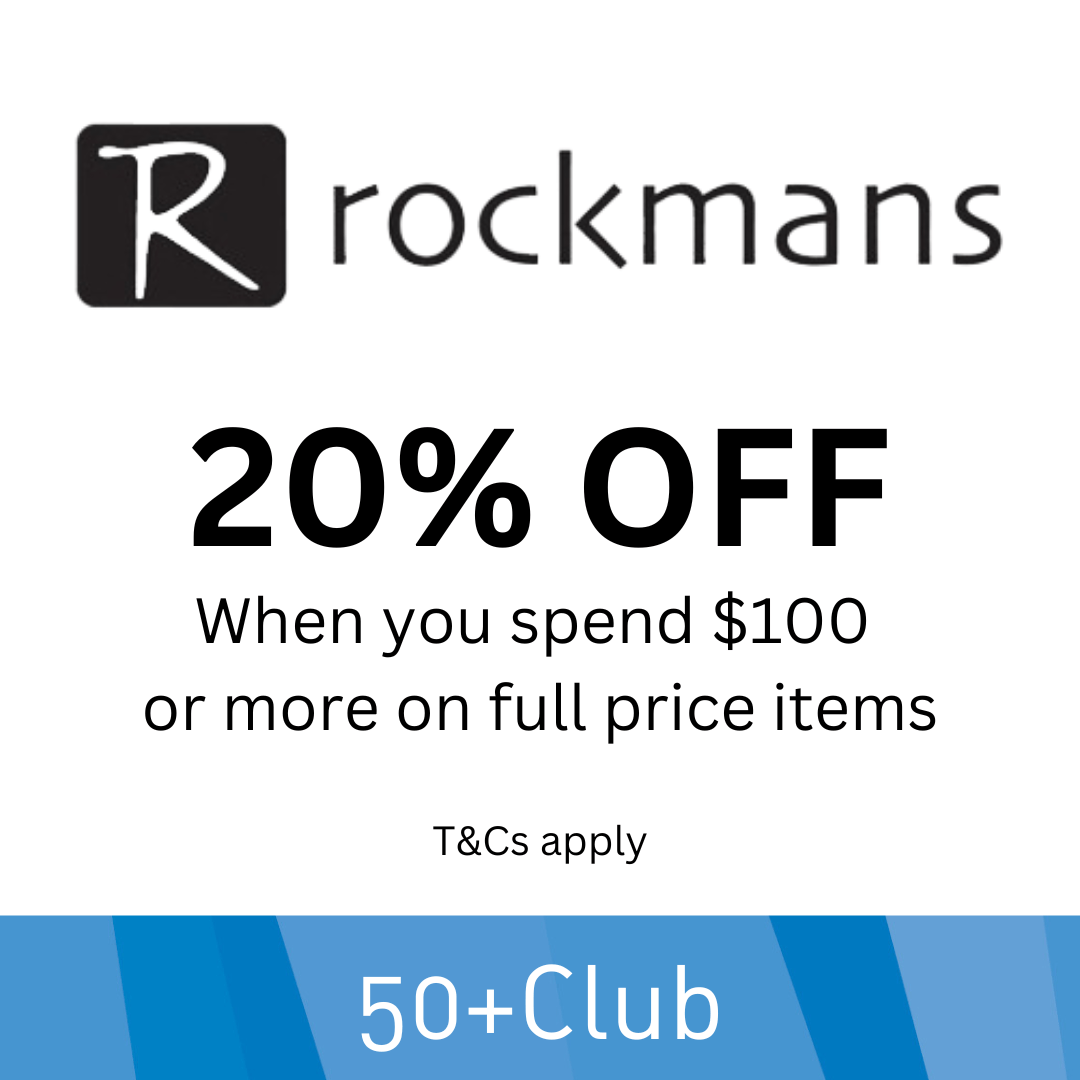 • Members must show their 50+ Club Card to obtain promotional offers and discounts, which are advertised on the 50+ Club website.
